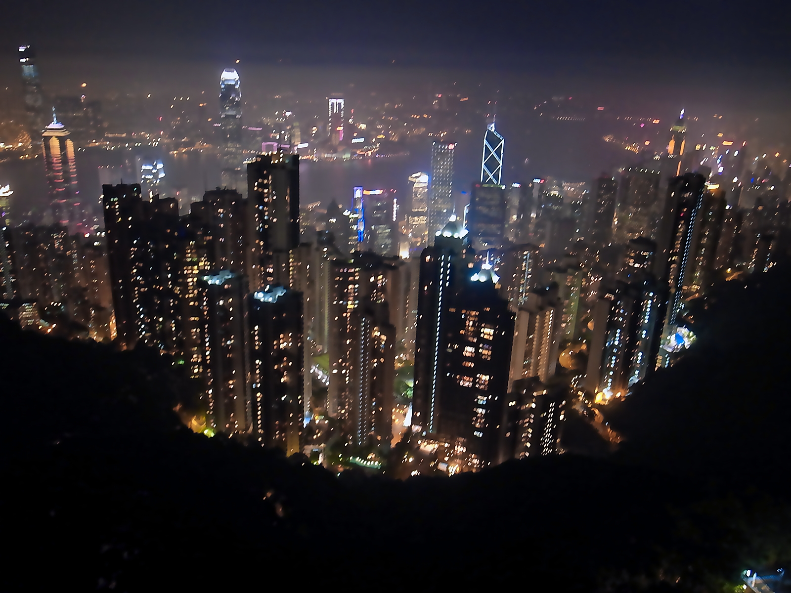 トラムを降り、延々とエスカレーターを乗り継いでたどり着いた展望台は、ライトアップショウの時間を前にして、もの凄い混雑になっている。Peak とは言っても、展望台にのぼらないと、あんまり何も見えないのか。